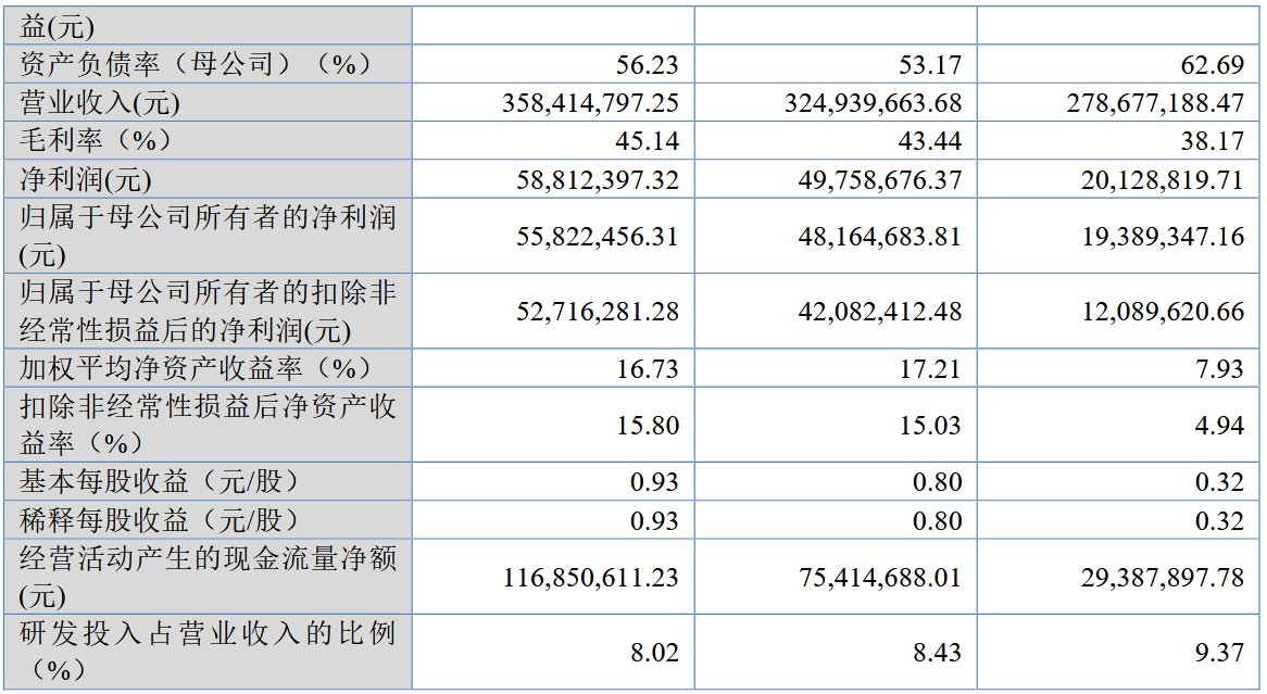 财务方面,于2022年度、2023年度、2024年度,公司实现营业收入分别约为2.79亿元、3.25亿元、3.58亿元,同期实现净利润分别约为2012.88万元、4975.87万元、5881.24万元人民币。