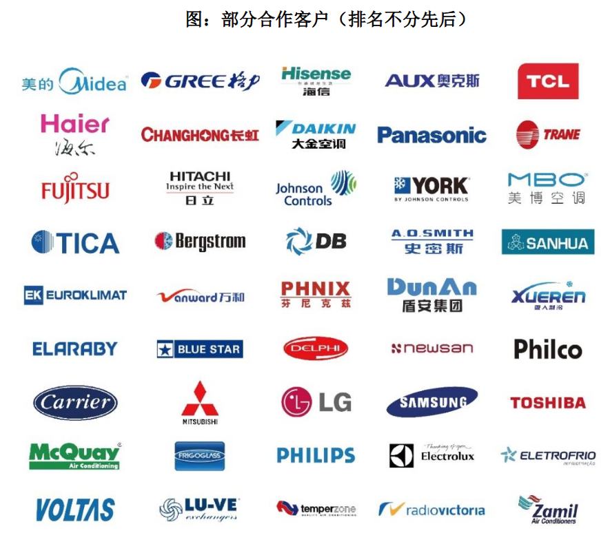 资料显示,换热器是空调设备中的重要组成部件,换热器的好坏直接影响空调能效比以及可靠性等重要指标。应用于空调产品中的换热器型式较多,包括翅片管式换热器、板式换热器、微通道换热器等,翅片管式换热器是目前应用最多的型式。